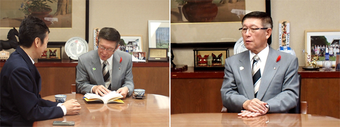 佐竹敬久秋田県知事へ寄稿のお礼と出版のご報告 ■秋田県庁知事室にて(2014年10月6 日AM10:30~)