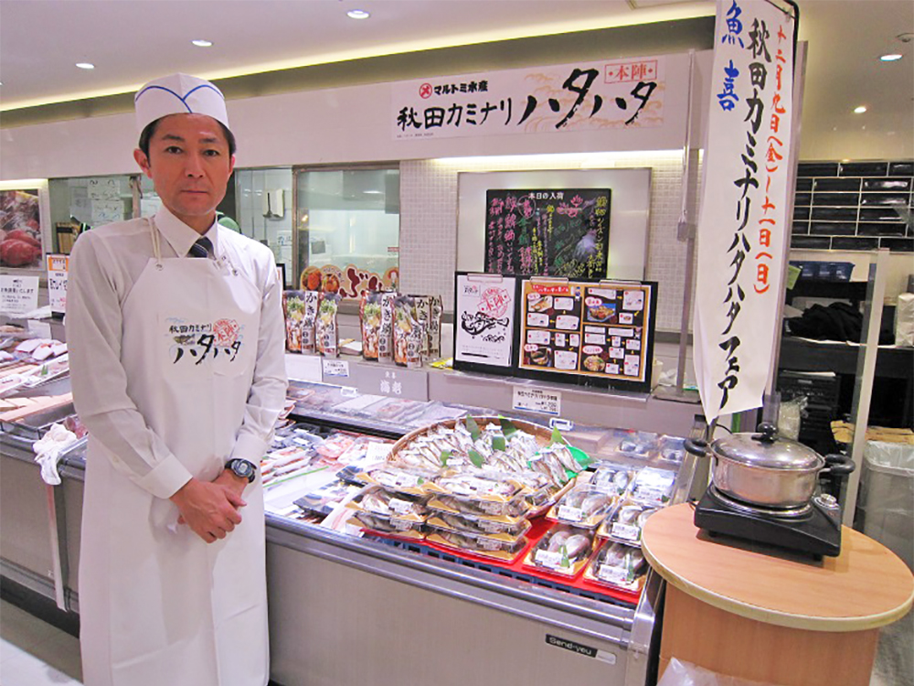 会社の皆様から御指導・御協力いただき、商品づくりを共に行うパートナー企業を発掘し、パッケージデザインの作製、原価の計算など経て「秋田カミナリハタハタの初陣・本陣」として販売に漕ぎつけることができました。