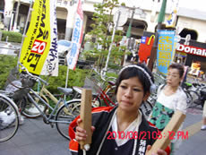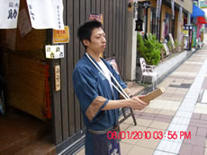 どんどん全国に店舗が増えていく中、何か当社らしい社会貢献ができないものか?と思案している中で、火の用心を復活させようという声が上がりました。最初はスタッフの人数の関係などで出来る店舗だけが独自で行っておりました。しかし、それを聞いた他の全国の店舗から「当店でもやりたい」という声が続々と寄せられるようになりました。「それなら全国の直営店で行おう!」ということになり、揃いの火消半纏を作り、拍子木を作り全国の店での火の用心がスタートしたのでした。店の回りの町内をぐるりとまわってますが、開店時にスタッフが少ない店では店の前で「火の用心!マッチ1本火事のもと!!カーン!カーン!」とさせて頂いております。