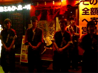 その一方で震災から1年半が過ぎ、人々の記憶から震災のむごさが薄れてきているように感じておりました。被災地はまだまだ苦しんでいるのに時間が経つにつれて忘れられていくような空気を感じ、たまらないもどかしさを抱いておりました。そんな中、閉店を惜しむ声は大変ありがたく心に突き刺さるものがございました。そして復興支援酒場が存在していることの意義を強く思うようになりました。お店でのお客様同志の会話は震災時の話しや復興についての議論が交わされたりしております。仮にお店へいらして頂かなくても復興支援酒場の看板の前を通るだけでも震災を思い出して頂けると思いました。大きな意義があると思います。だから銀座店は残そうと思いました。日本の中心である銀座に復興支援酒場の提灯の明かりが灯っていることの意義を信じて残すことと致しました。
