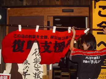 本来、本当の復興とは被災地にある地場の店舗が潤うことだと思います。復興支援酒場は多くのマスコミに報道頂くことができました。伴って「TVを見た」というお客様も大勢いらして下さいました。しかしある時から、これは隣近所の店にとっては迷惑な事ではないのかと考える様になりました。復興という旗印を掲げ、マスコミで扱われ、知名度が上がる。それをご覧になった方々がどうせ飲むなら復興支援酒場でとおっしゃってお店へいらして下さる。近隣の同業者からみればアンフェアな環境ではないかと思うようになったのです。それが被災地にある仙台店を予定通り閉店した理由でございます。