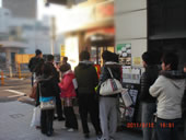 この炊き出しはライフラインが復旧し、食糧などが確保できるとその地域のスタッフが判断するまで各々の地域で続けることができました。仙台のある店では、毎日約1,000食のおかゆやスープなどを配ることができました。当時は町に本当に食糧がなかったのです。店の前には約700名近い行列が連日できました。小さなお店なので作っては盛り、作っては盛りという作業が朝から晩まで続きました。弱音を吐かずに頑張ったスタッフには本当に「ご苦労さん!」と言いたいです。また、大変うれしい出来事がありました。近所のドーナッツ屋さんが「使ってください」と玉子を差し入れて下さったのです。自分のところでは炊き出しが出来ないので炊き出しをしている当店で活用して欲しいということでした。その玉子は玉子スープとなりました。この善意にスタッフは「頑張るぞ!」という更なる勇気が湧いてきたそうです。