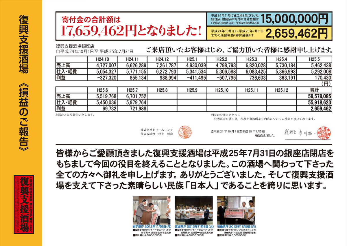 復興支援酒場 損益のご報告